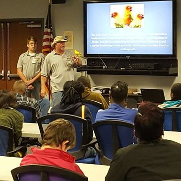 Our Educational Outreach Program is designed for all age groups and consists of an educational PowerPoint Presentation that gives a virtual tour of the rescue. Several of our Educational Outreach Parrots attend these events, giving attendees an up close view of parrot behavior.